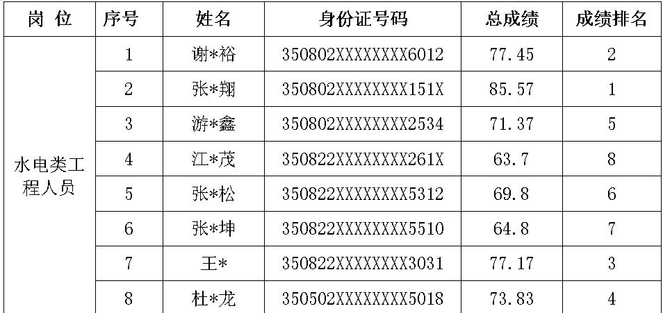 龍巖城發(fā)物業(yè)有限公司公開(kāi)招聘項(xiàng)目管理處工作人員成績(jī)排名的公示